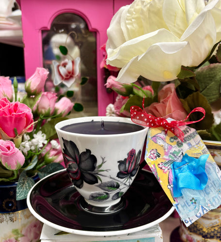 Beautiful Royal Albert Black Masquerade scented Soy Coffee Cup candle