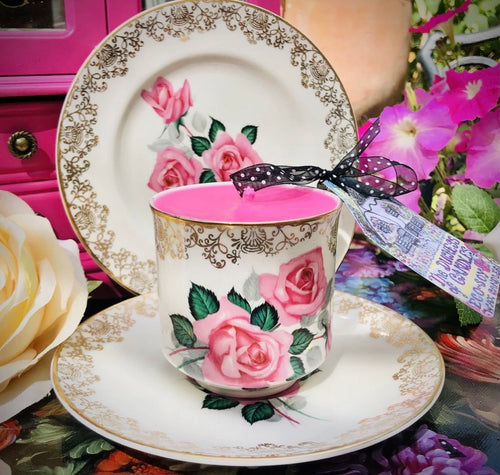 Vintage 1950s ‘Bowbell’ Pink Rose teacup Trio Soy Scented Candle